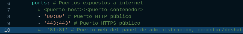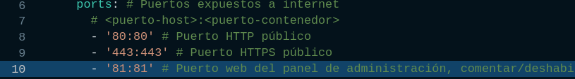 1. Deshabilitar el puerto 81 en el docker-compose.yml para que el puerto no siga expuesto, agregando el símbolo "#" delante de esa línea