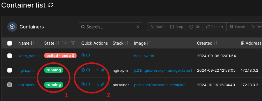 En este caso se pueden ver todos los contenedores instalados, junto con otros detalles